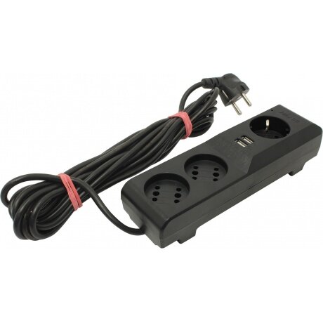 Сетевой фильтр PILOT 3G (3 евро+2 USB/3м/10А/150Дж/черный)