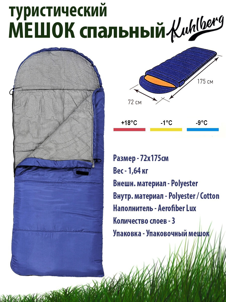 Купить Спальный мешок KuhlBerg "Школьник-3" трёхслойный с подголовником / спальник детский /подрастковый / туристический / походный / охота / рыбалка