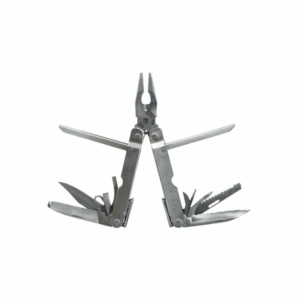 | Инструменты (функции) подробно | плоскогубцы нож серрейторный нож шило пилка открывашка для бутылок консервный нож отвертка плоская отвертка PH напильник линейка кусачки гаечный ключ |