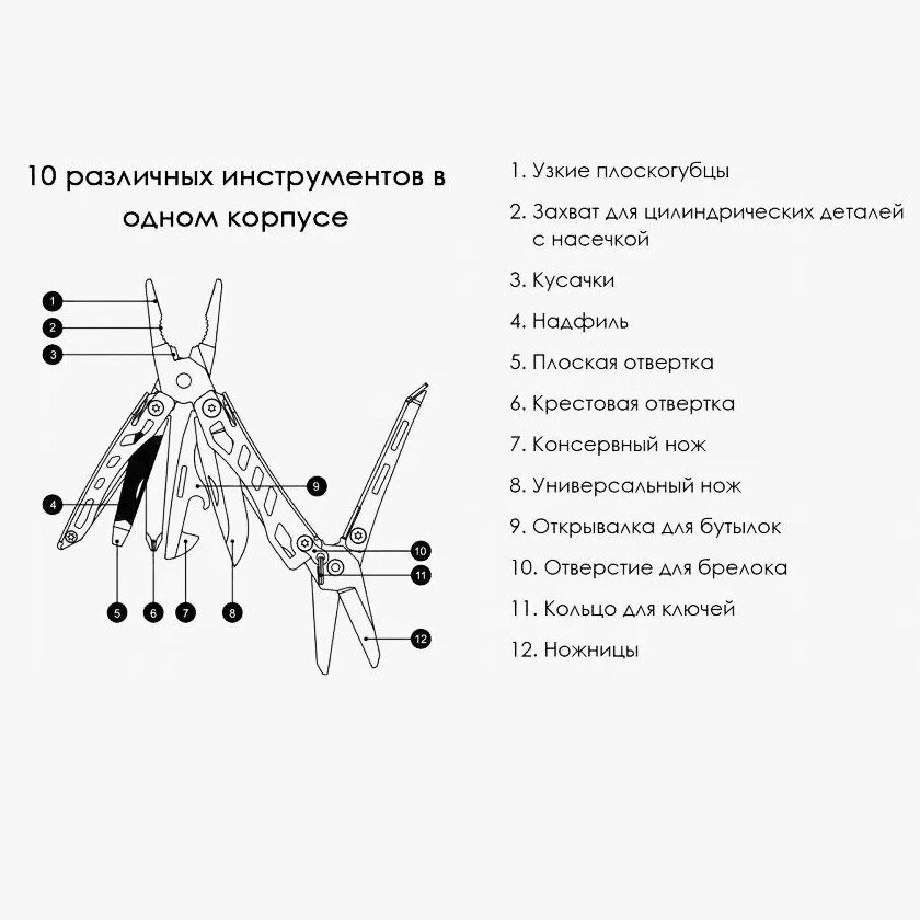 Компактный мультитул из нержавеющей стали с 10 инструментами Xiaomi NexTool Mini Flagship Black (NE20148)