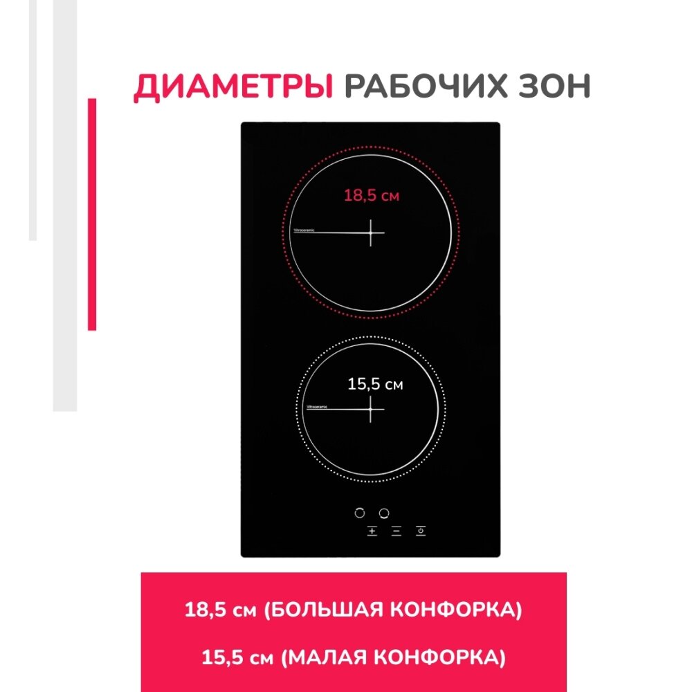| Размеры конфорок | большая - 18.5 см, маленькая - 15.5 см. |