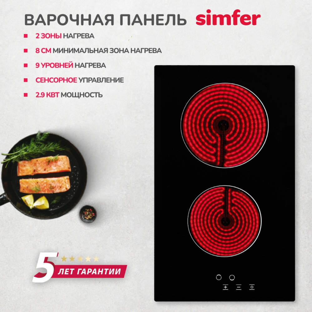Электрическая варочная панель Simfer H30D12B001, сенсорная панель, индикатор остаточного тепла интересное: