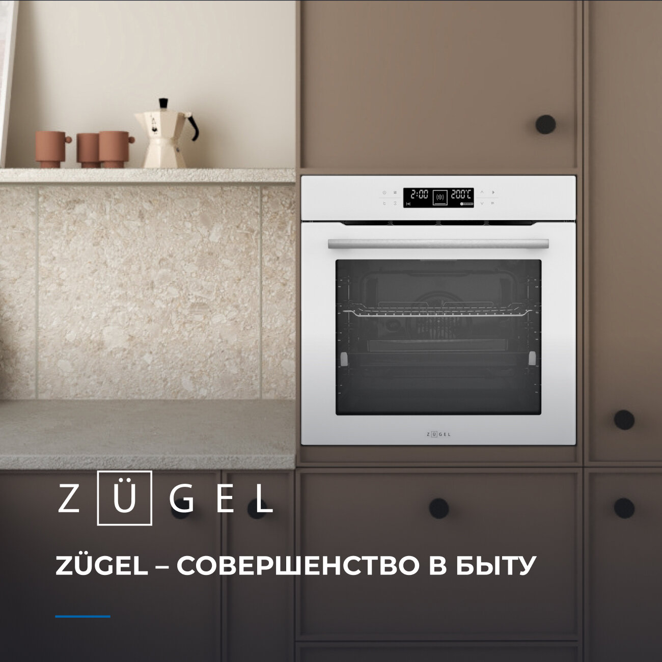 Духовой шкаф электрический встраиваемый ZUGEL ZOE601W, 9 режимов работы, 3D-нагрев, сенсорный дисплей, термощуп, белый