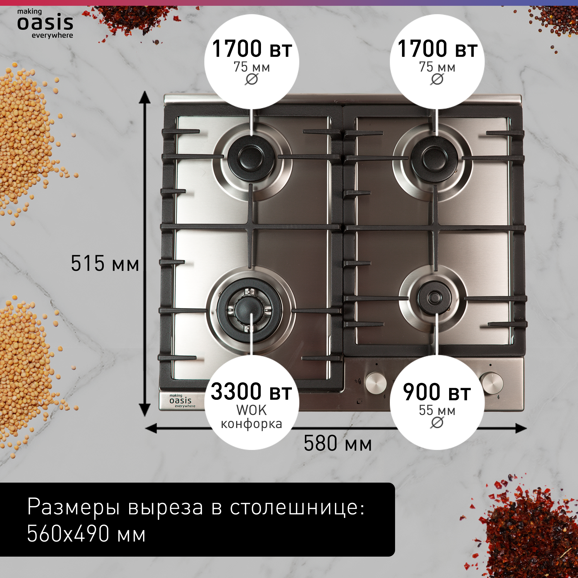 Газовая варочная панель Oasis P-MNRT (B) интересное: