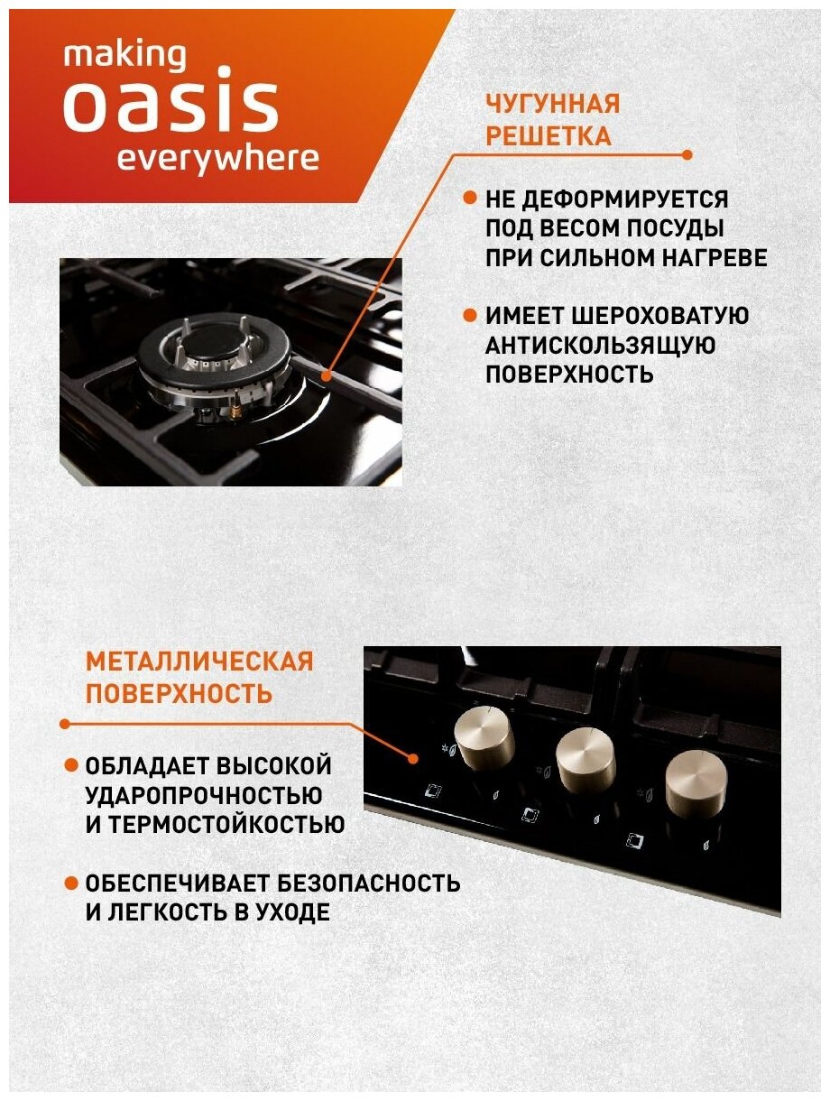 Варочная панель газовая making Oasis everywhereP-3MBT (B) Черная металл решетка чугун 3 комфорки