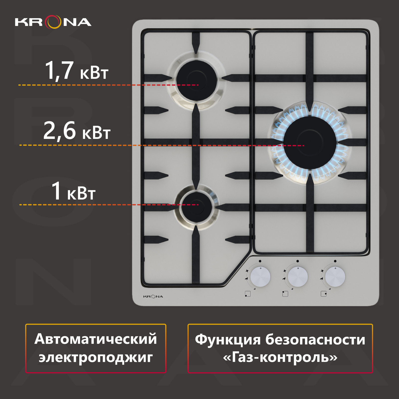 Варочная поверхность KRONA VOLLE 45 IX встраиваемая газовая интересное: