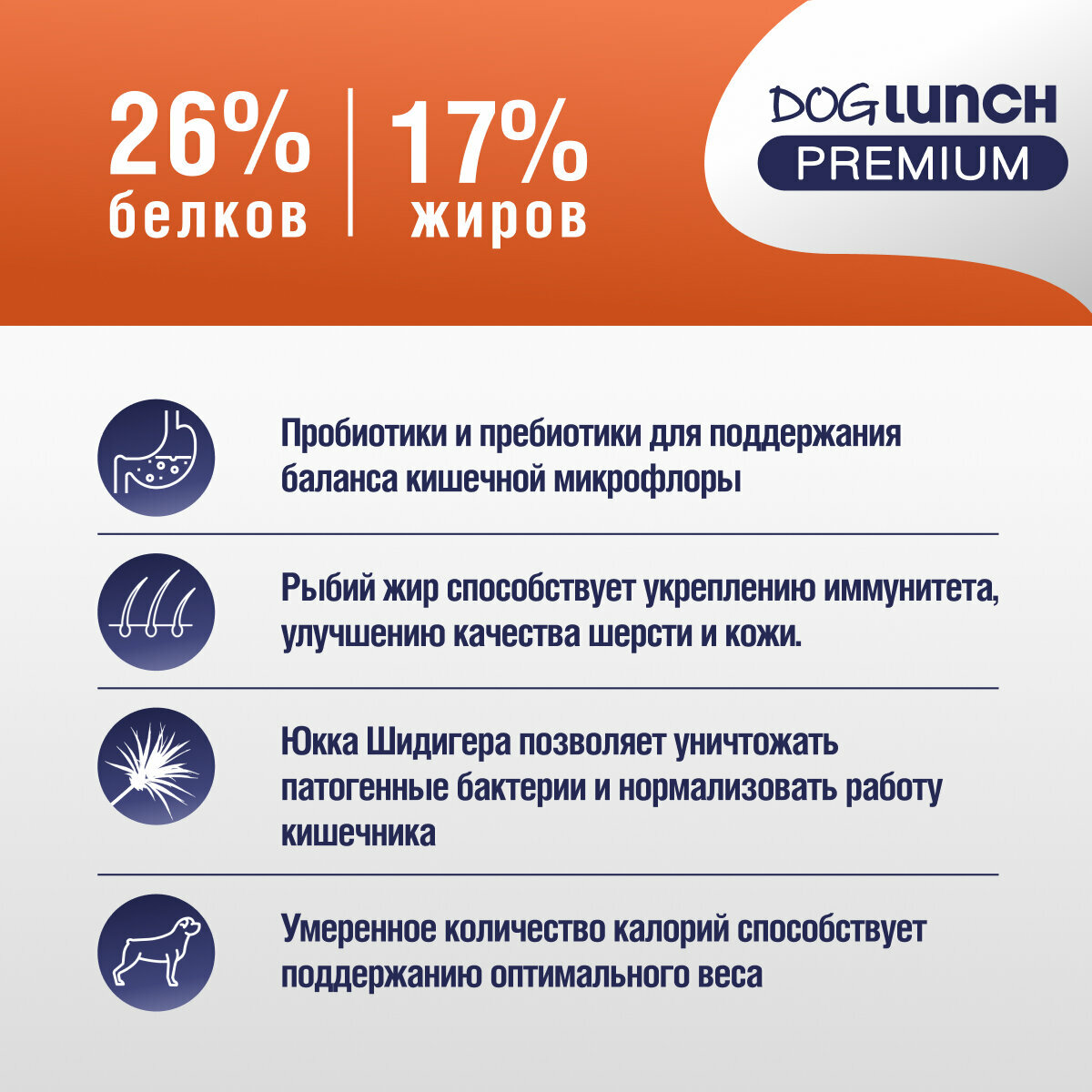 DOG LUNCH PREMIUM для взрослых собак средних и крупных пород с говядиной (15 кг)