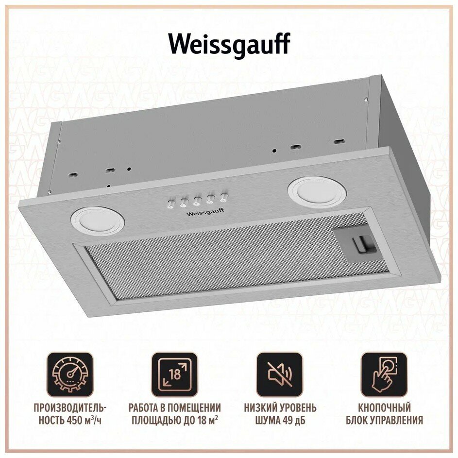 Кухонная встраиваемая вытяжка Weissgauff BOX 455 Inox интересное:
