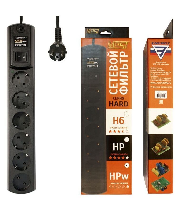 Сетевой фильтр Most HPw 5м (6 розеток) черный (коробка) .