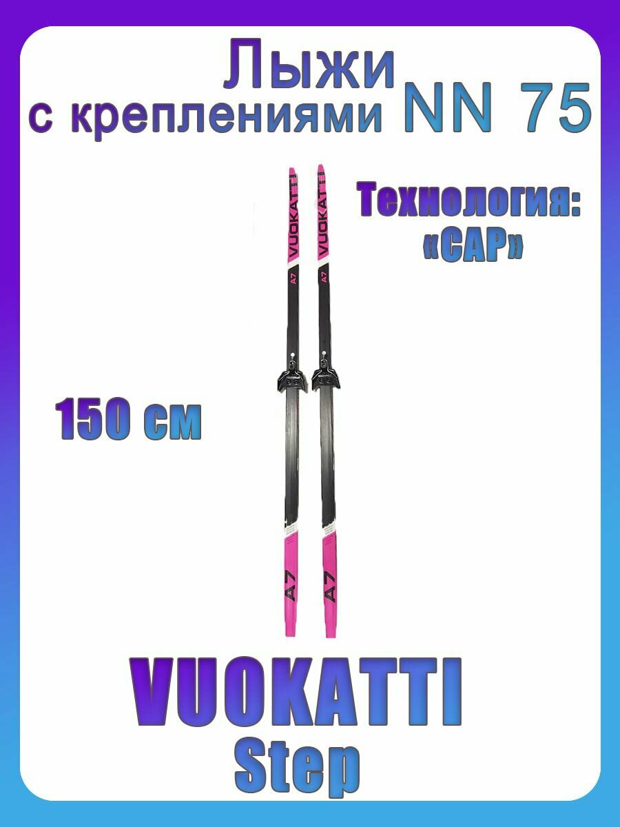 Лыжный комплект VUOKATTI / Беговые лыжи 150 см с креплением 75 мм Step цвет Black/Magenta интересное: