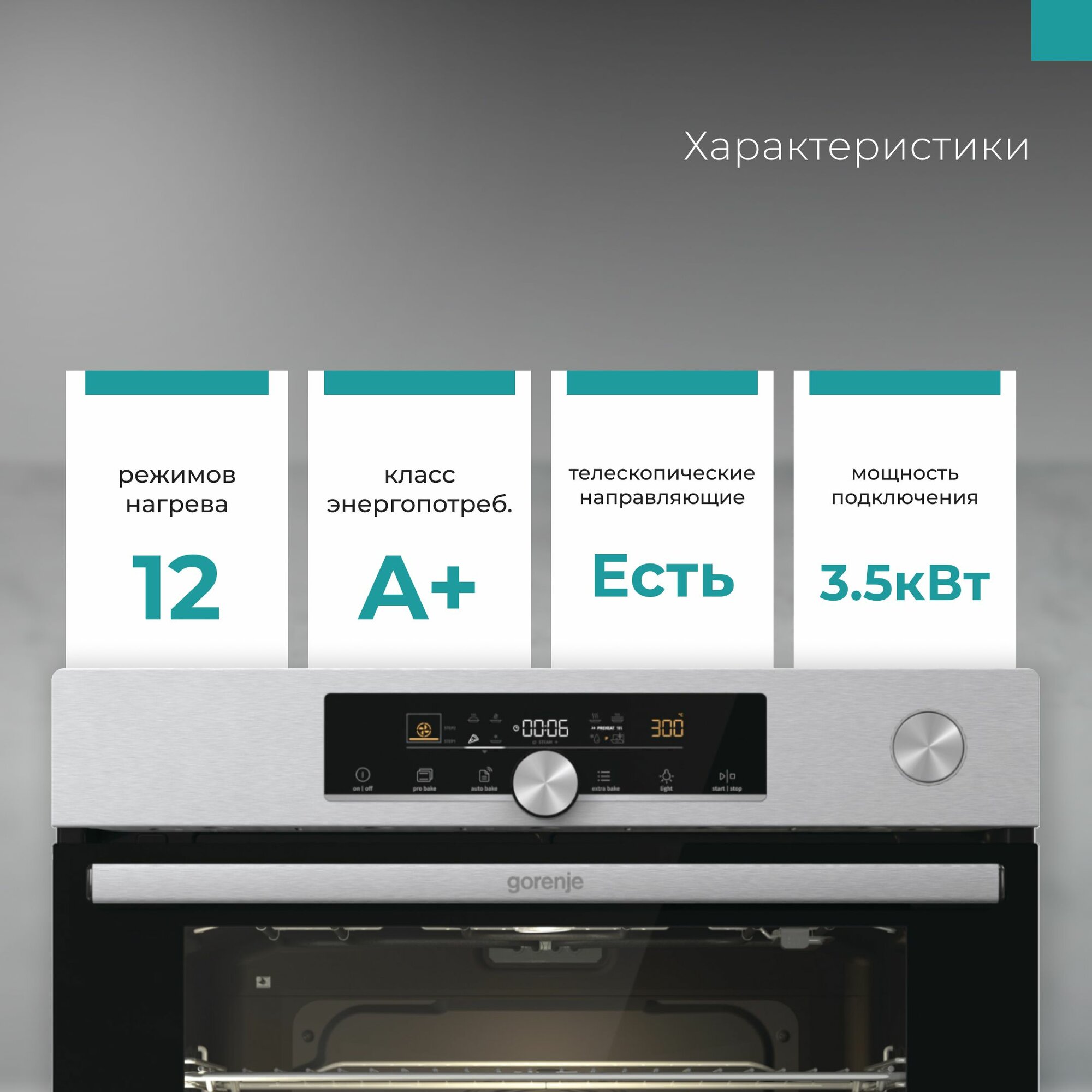 | Особенности конструкции | дисплей / подсветка камеры / телескопические направляющие / термощуп / часы / эмаль легкой чистки |