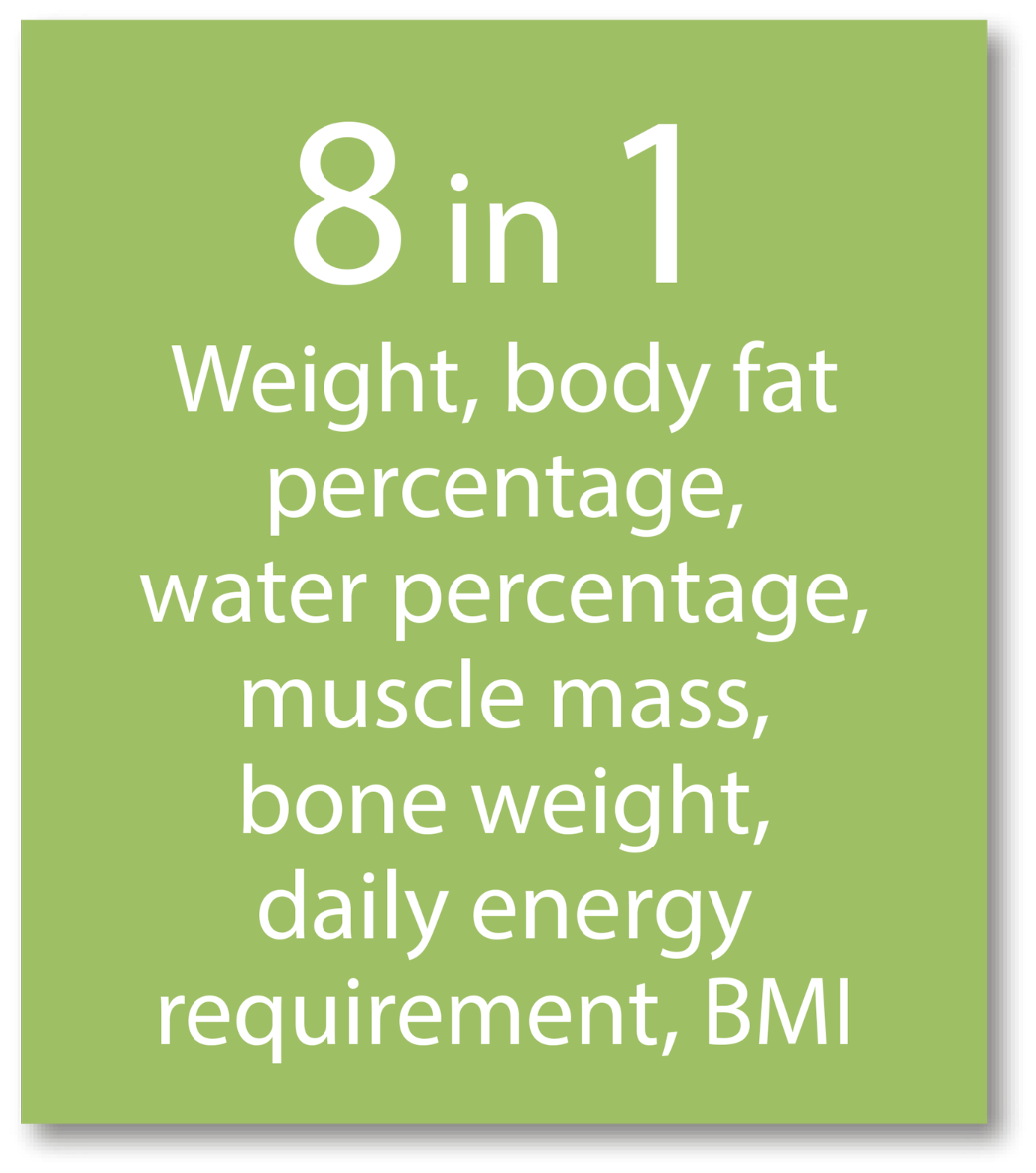 | Дополнительные функции | определение доли воды / определение доли жировой ткани / определение доли костной ткани / определение доли мышечной ткани / память / расчет ИМТ (BMI) |