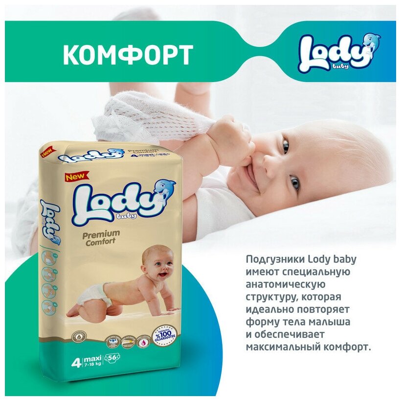 Подгузники детские LODY Baby 4 макси 7-18 кг 56шт интересное: