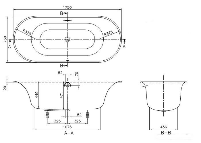 Ванна овальная Villeroy&Boch Cetus материал Quaryl 1750х750х471 мм белая