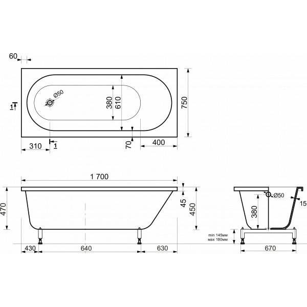 ART&MAX Акриловая ванна ART&MAX AM-218-1700-750 отдельностоящая