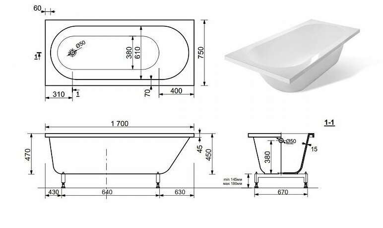 | Дополнительная информация | Диаметр слива 50 мм. |