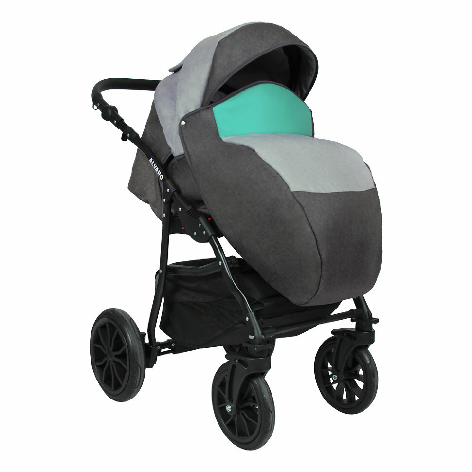 Коляска 2в1 Alis Alvaro универсальная, всесезонная, (01), темно-серый, светло-серый, бирюзовый