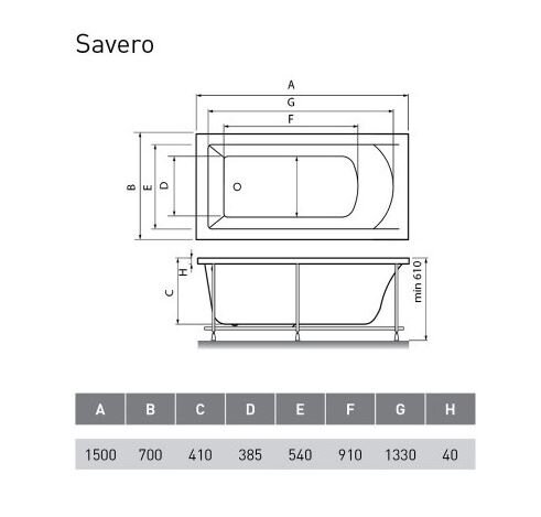 Акриловая ванна 150x70 см Vayer Savero GL000009893