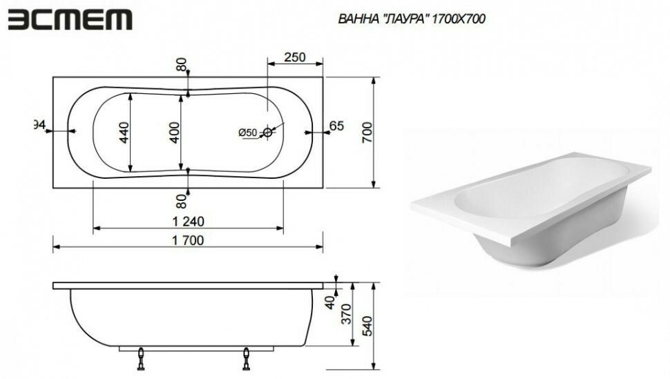 Ванна из литьевого мрамора Эстет Лаура 170x70 см интересное: