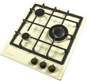 Купить Газ, 45 см, газовая, 3 конфорки, независимая, автоподжиг, газ-контроль, кольцо для посуды WOK, чугунные решетки, жиклёры для баллонного газа, бежевая, рустик