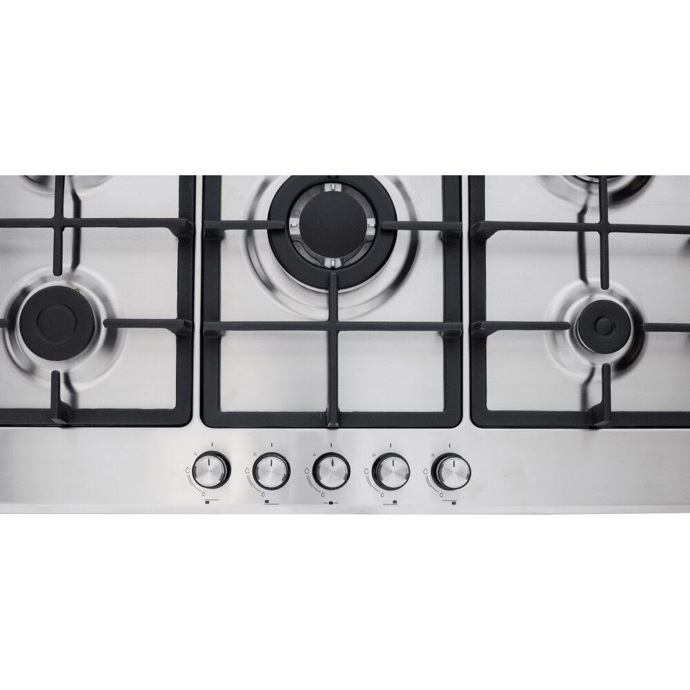 Газовая варочная панель Simfer H90W51M572, нержавеющая сталь, газ-контроль, автоматический розжиг конфорок, чугунные решетки, комплект жиклеров для баллонного газа