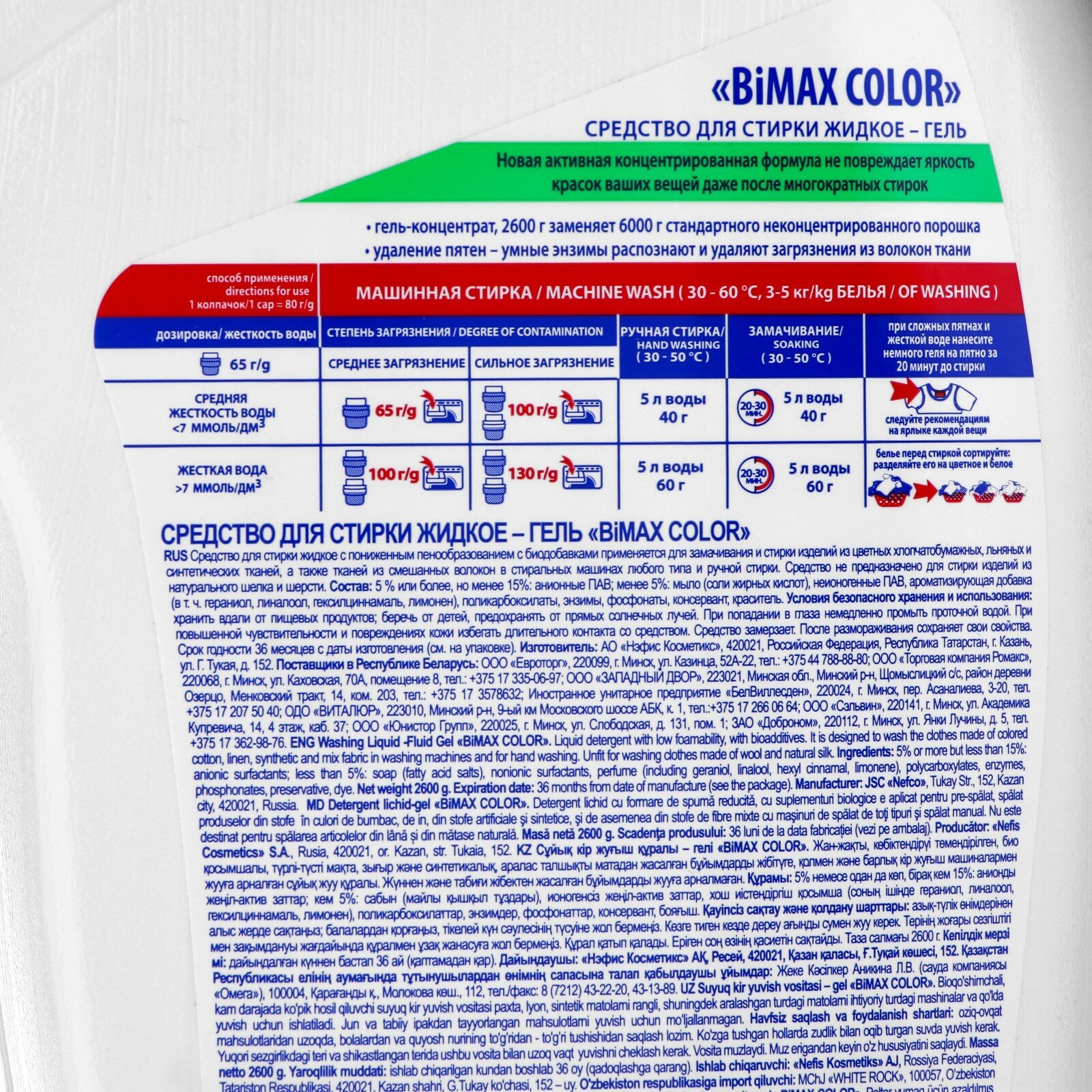 Гель для стирки Bimax Color, 2.6 л, 2.6 кг, бутылка с дозатором