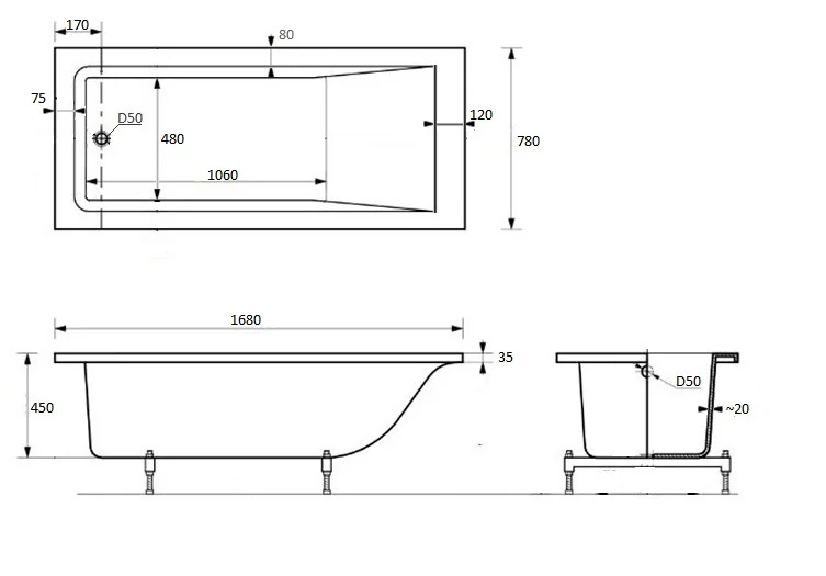 ART&MAX Акриловая ванна ART&MAX AM-218-1700-750 отдельностоящая