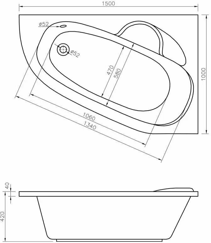 Угловая ванна акриловая 150 x 100 с каркасом и экраном Lavinia Boho Bell Pro S2-370215PR в наборе 4 в 1: асимметричная ванна (правый разворот), каркас, экран, подголовник