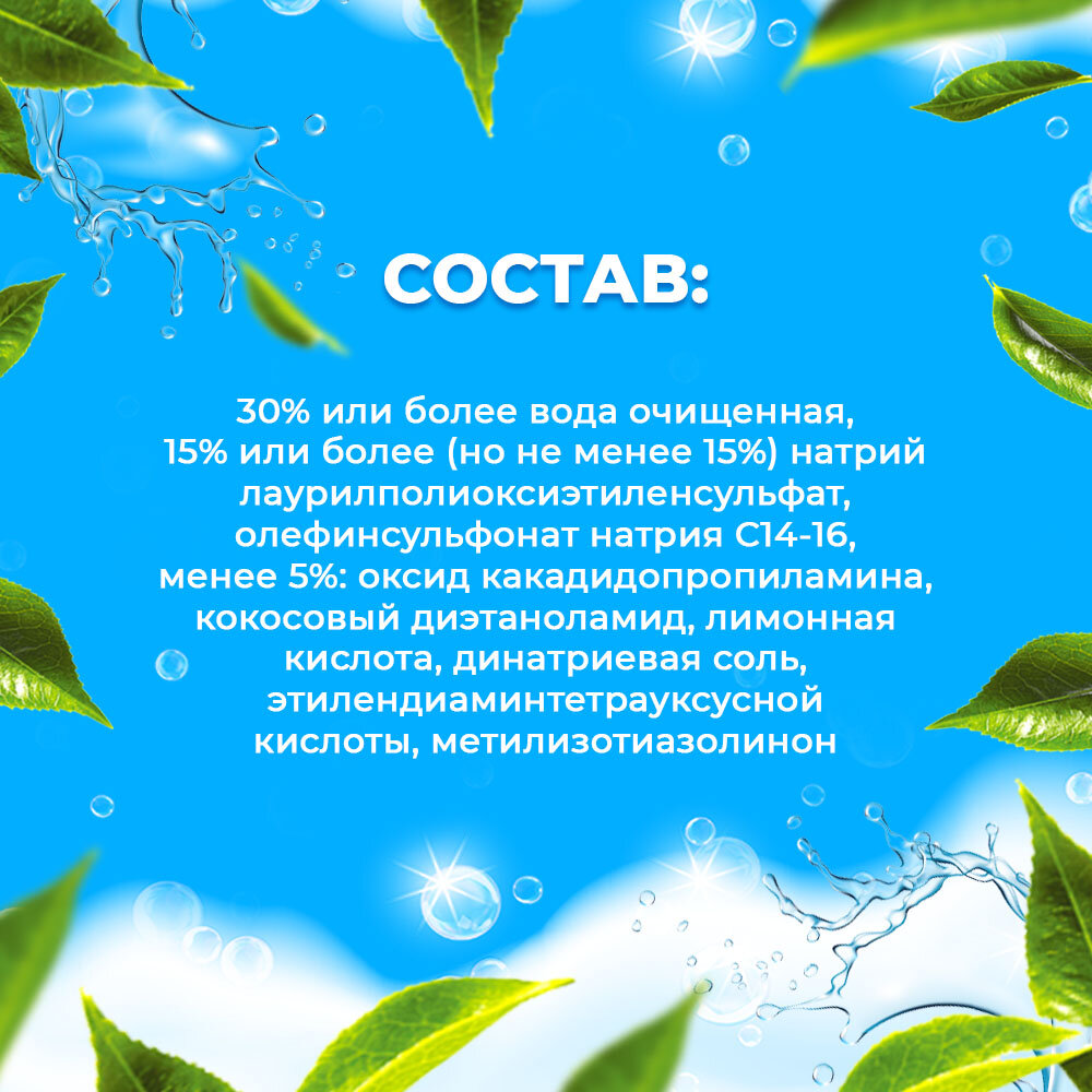 Средство для мытья посуды, овощей и фруктов Liby "Чистая посуда" Зелёный чай