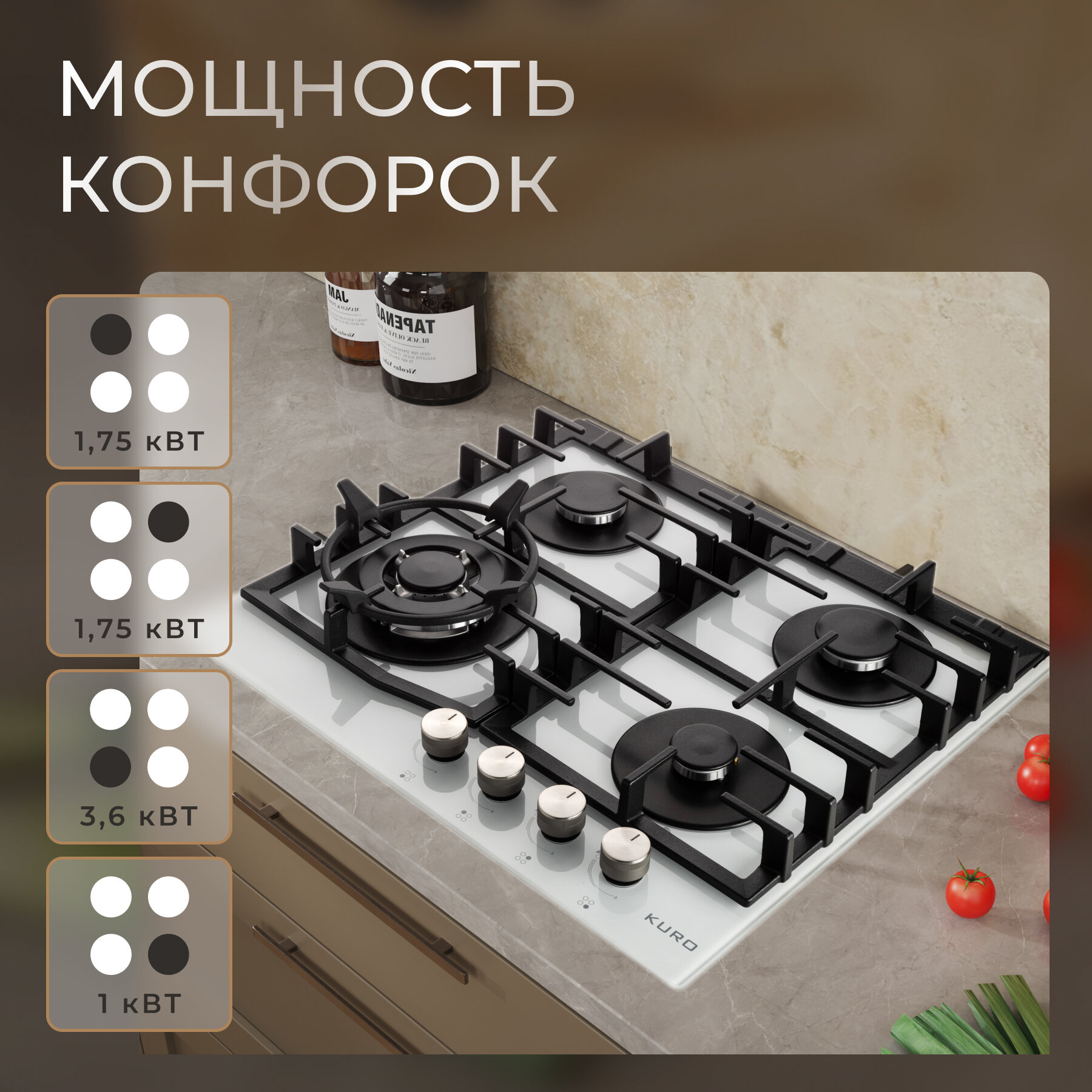 Газовая панель KURO KHG 642 WG интересное: