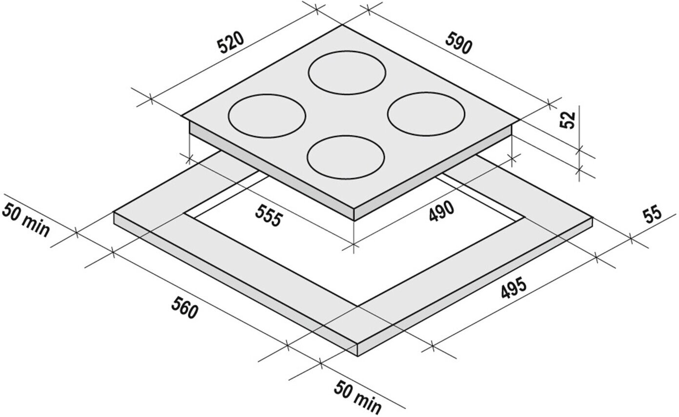 | Безопасность | защитное отключение конфорок / индикатор остаточного тепла / кнопка блокировки панели |