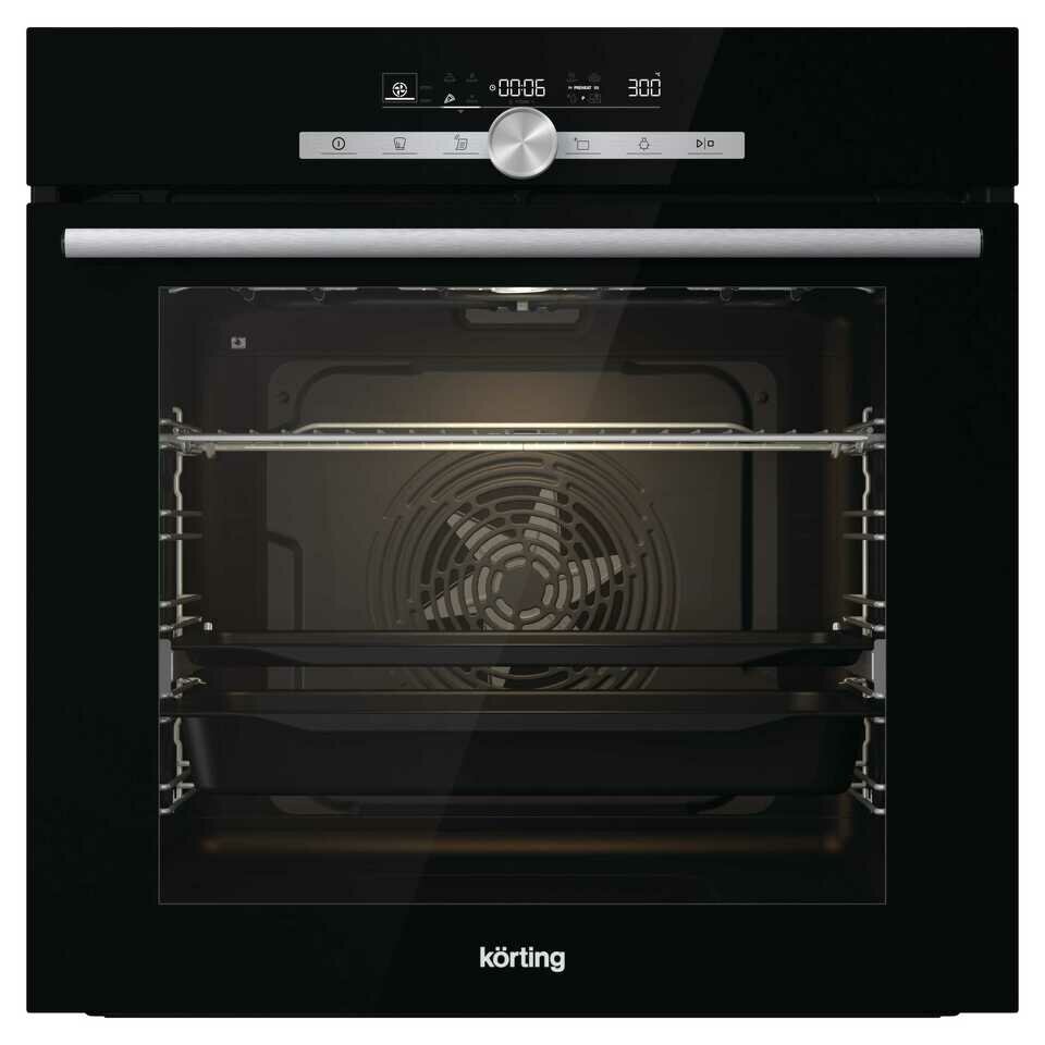 Встраиваемая газовая духовка Korting Встраиваемый 60 см, Motion, 77 л, 12 режимов, каталитическая очистка с паром, черный цвет
