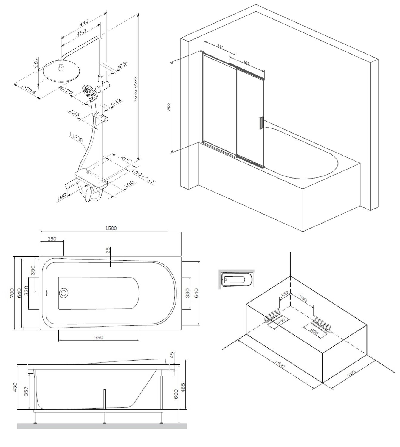 Купить Ванна со шторкой и душевой колонной AM.PM Like W80ASET-150SL