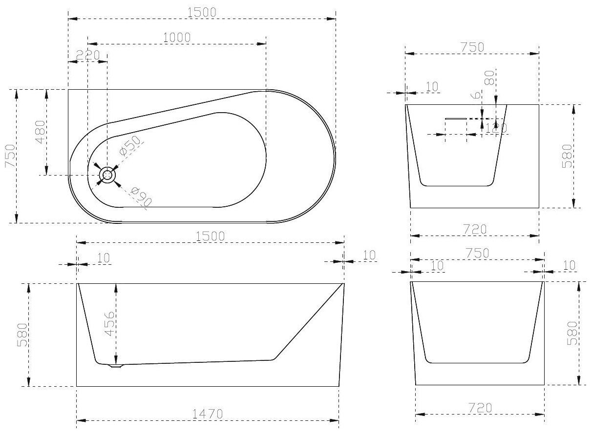 Акриловая ванна ABBER AB9496-1.5 L 150x75 пристенная