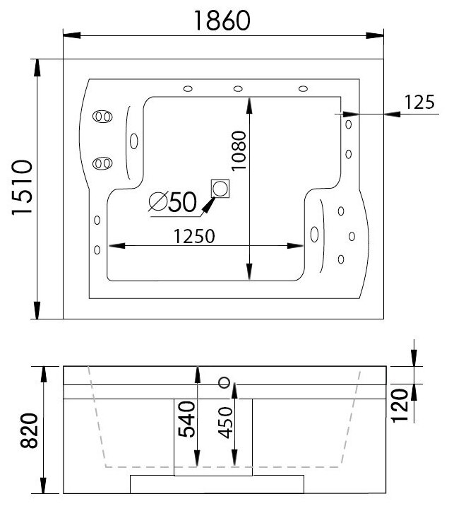 Акриловая ванна Gemy G9052 II B L 186x151 пристенная