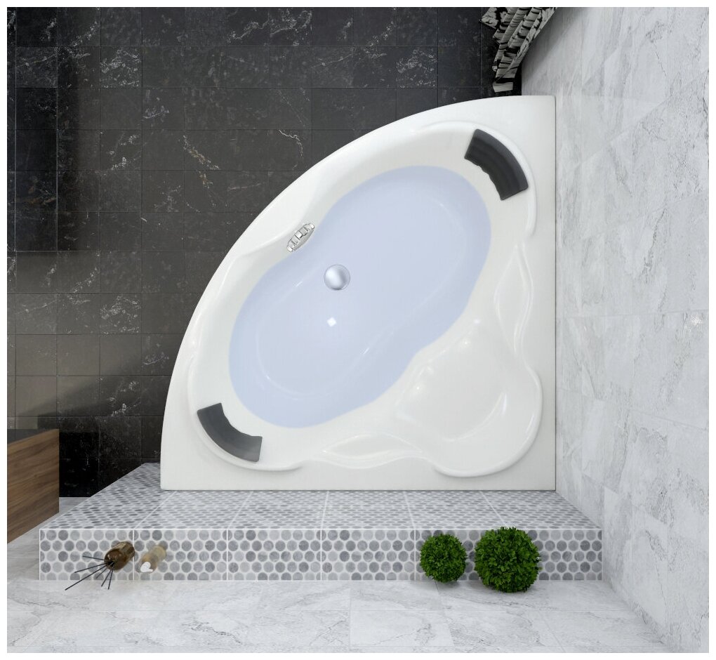 Акриловая ванна 140х140 см Lavinia Boho Elegant набор 5 в 1 S4-3705014P: угловая ванна, каркас, подголовник, экран, хромотерапия