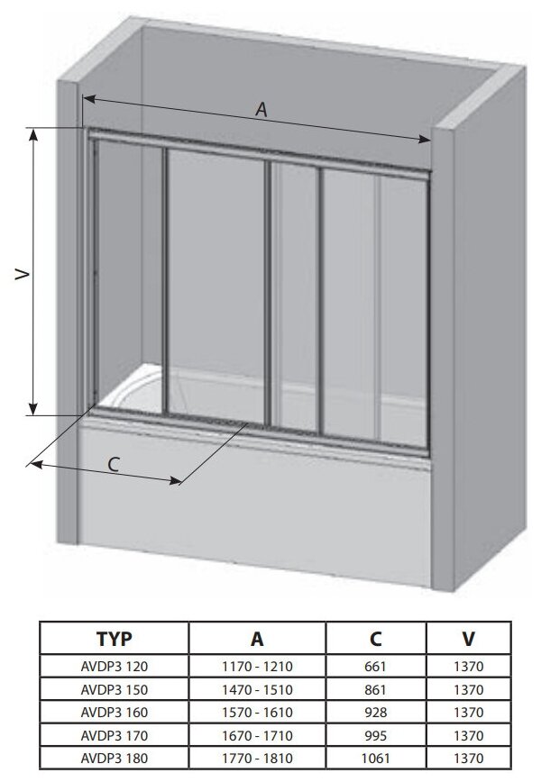 Шторка на ванну Ravak AVDP3-170 Rain, профиль белый