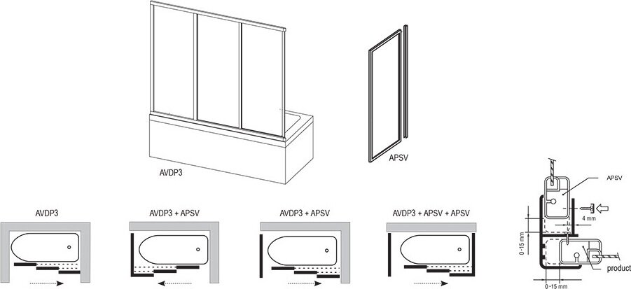 Боковая стенка для шторки на ванну Ravak Supernova APSV-80 95040U0241 профиль Сатин стекло Rain