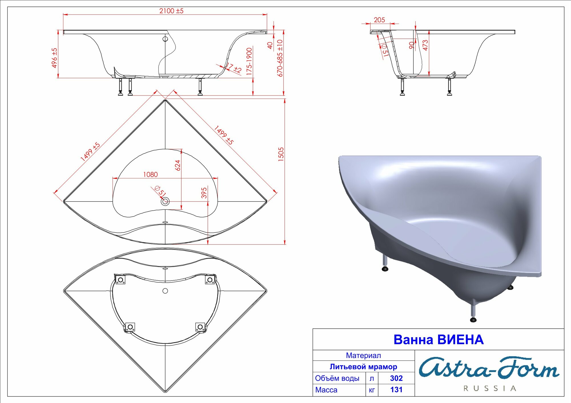 Ванна из искусственного камня Astra-Form Виена, белая интересное: