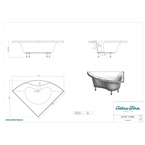 Ванна Astra-Form Виена белая ( установочные ножки в комплекте)