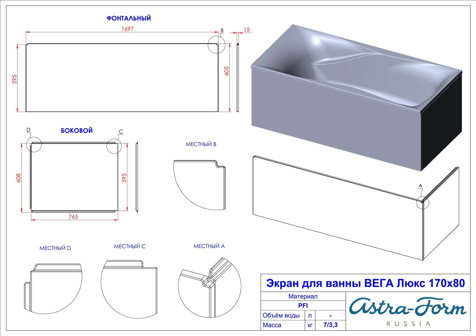 Купить Ванна из искусственного камня Astra-Form Вега Люкс 170x80