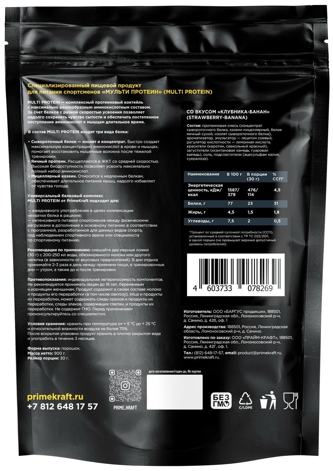 Протеин Prime Kraft MULTI PROTEIN (клубника банан), 900 гр.