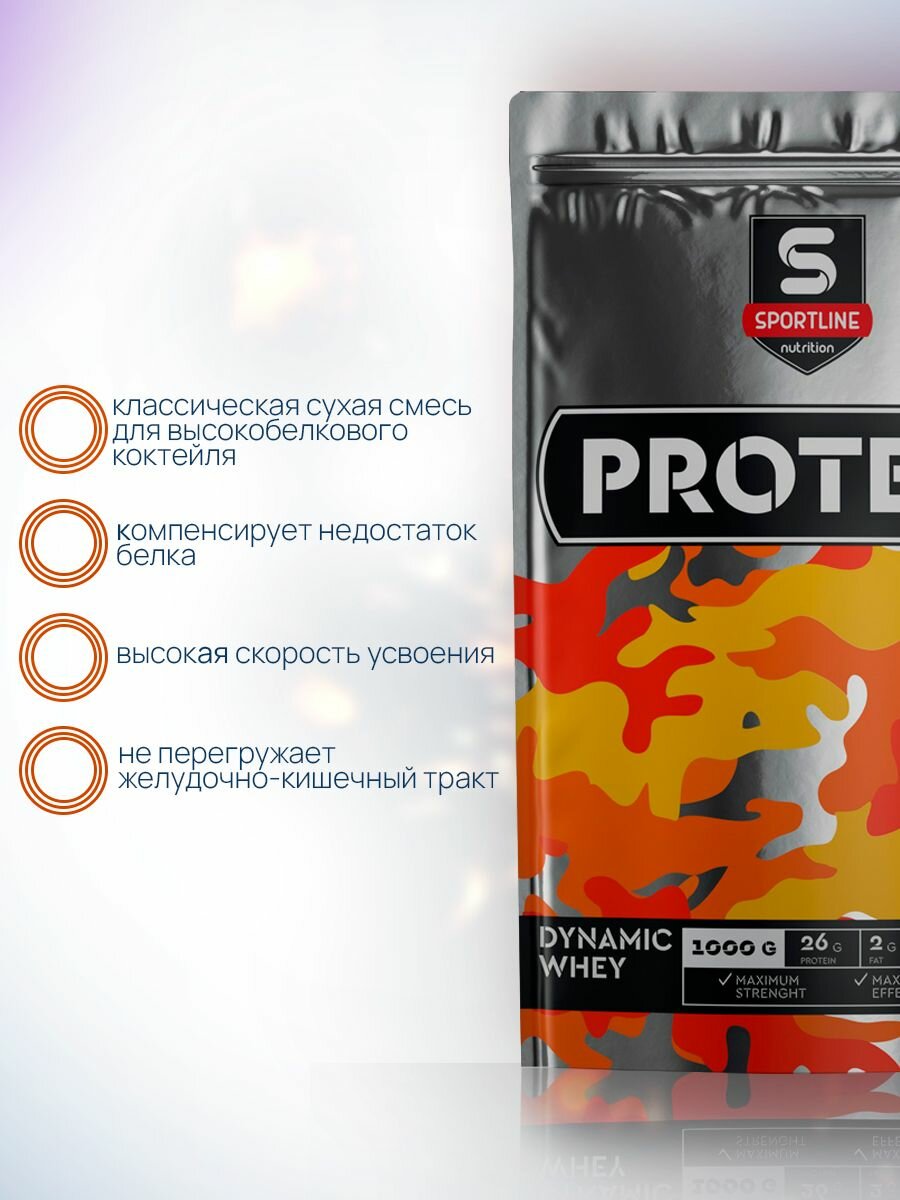 Протеин SportLine Nutrition Dynamic Whey Protein, Пломбир, спортивное питание, 1000 г