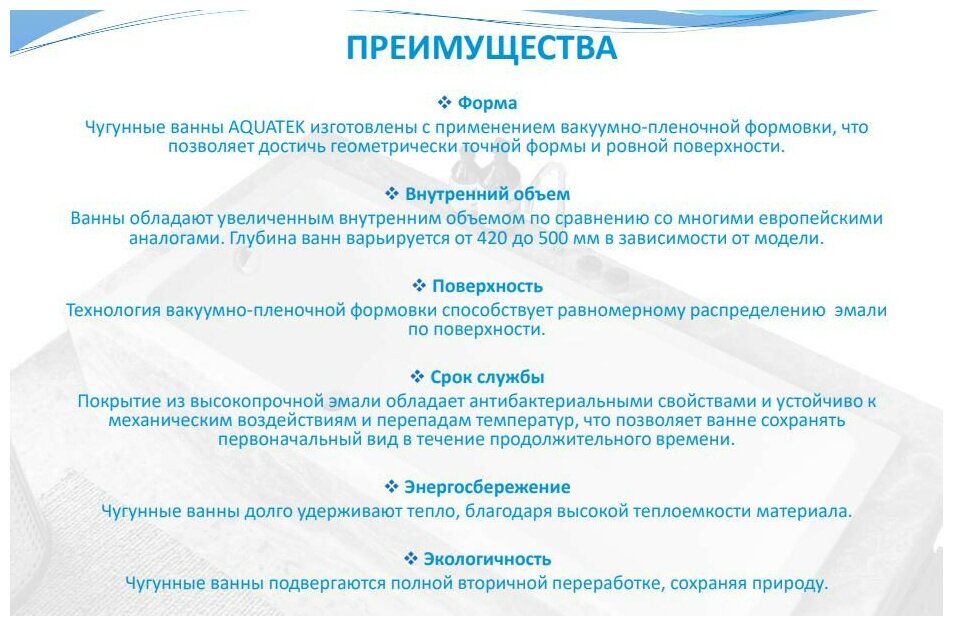 Ванна чугунная эмалированная Aquatek 1700x700 в комплекте с 4-мя ножками AQ8870F-00 сигма