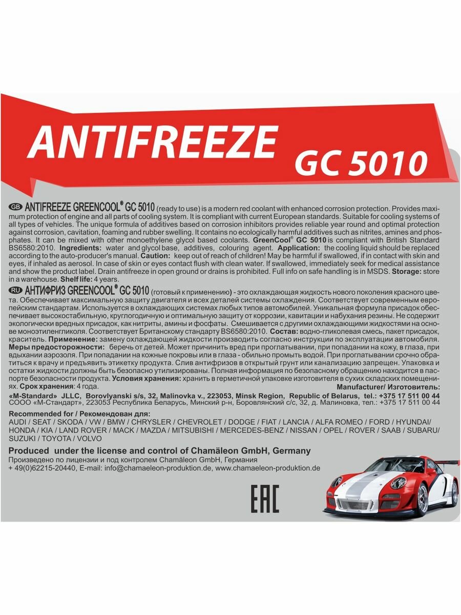 СохранитьАнтифриз Greencool gс5010 [красный], готовый, 5кг Greencool 791685 интересное: