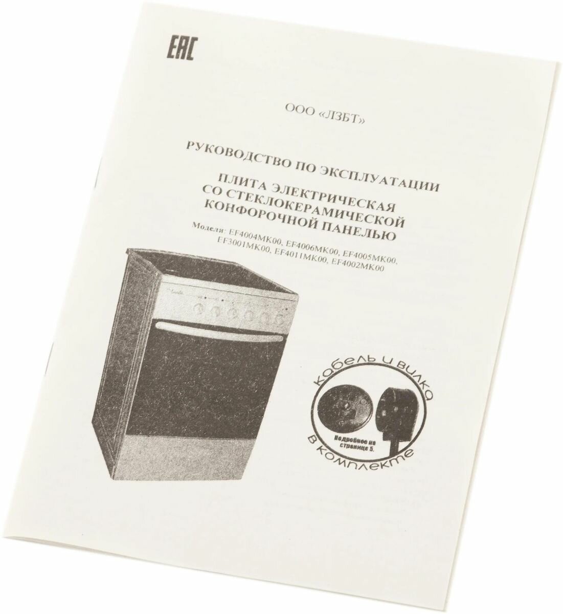 Электрическая плита лысьва EF4002MK00, стеклокерамика, без крышки, белый