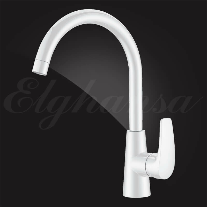 Смеситель для кухни высокий однорычажный с поворотныи изливом Elghansa MONICA WHITE 56B1219-White, белый