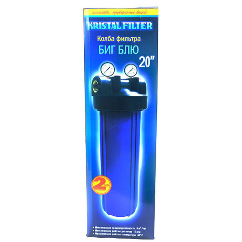 Фильтр магистральный KRISTALFILTER Big Blue 20 NT 1, с манометрами синий