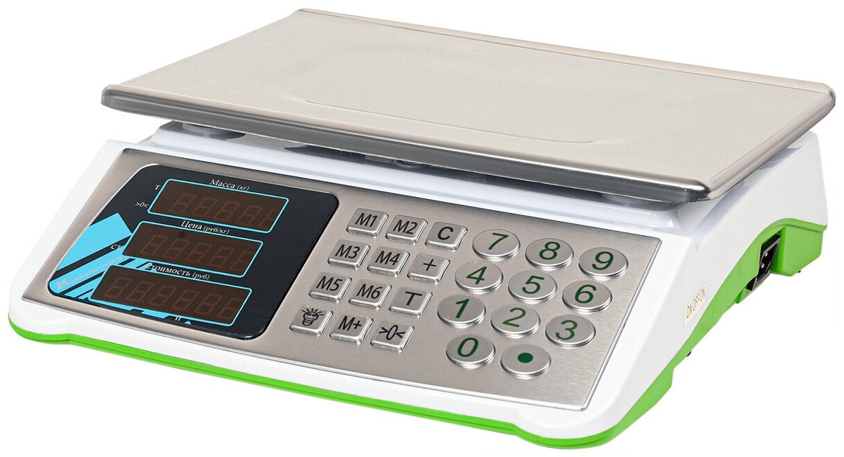 | Функции | вычитание массы тары / расчет и отображение стоимости / расчет сдачи |