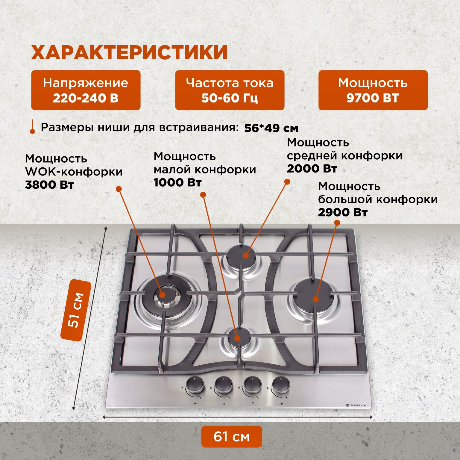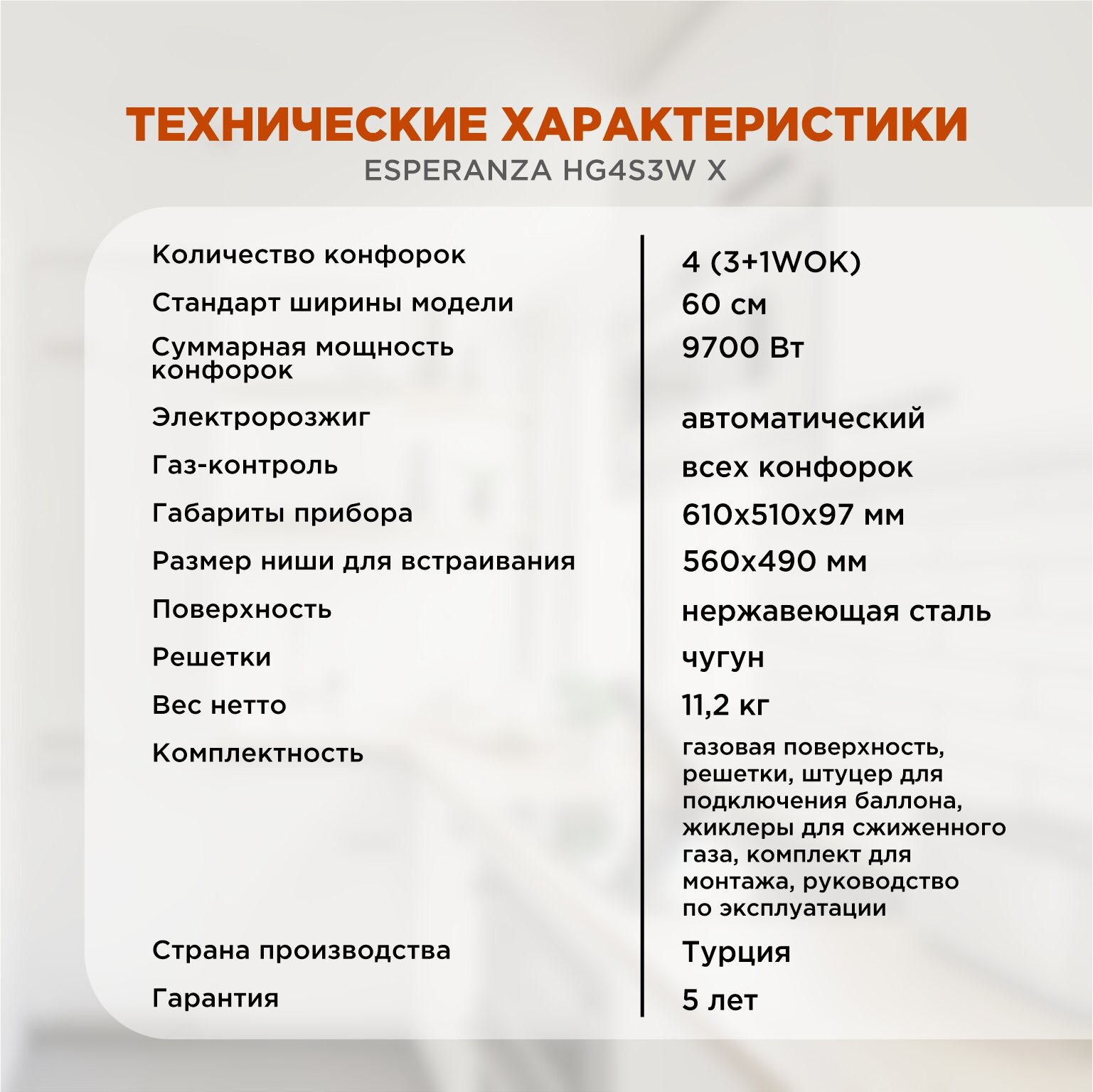 Газовая варочная поверхность ESPERANZA HG4S3W X интересное: